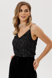 Топ выполнен из сетки с вышивкой пайетками. Топ прямого силуэта, длиной выше линии бедер. Топ на отлетной по низу трикотажной подкладке. Бретели регулируемые по длине. Длина топа: р. 44-48 -47 см, р. 50-54 - 49 см. Гарантийный срок не установлен ГОСТ 25294 - 2003