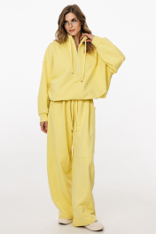 Комплект: джемпер+брюки. Комплект выполнен из трикотажного полотна. Джемпер прямого силуэта, покроя "oversize" длиной до линии бедер. Спереди застежка на молнию. Воротник-стойка. Плечевой шов удлинен. Рукав рубашечного покроя, одношовный, расширенный и присборенный к низу. Низ рукава на притачной манжете. Низ джемпера на эластичной тесьме с фиксаторами. Джемпер декорирован вышивкой по переду. Брюки прямого силуэта, длиной в пол, на притачном поясе с эластичной тесьмой. Спереди боковые карманы с фигурным входом, петли в поясе, в которые втянут шнур из основной ткани, коленные вытачки, складки. Сзади справа накладной карман. Длина джемпера: р. 44-48 - 68,5 см, р. 50-54 - 70 см. Длина рукава от горловины: р. 44-48 - 77,5 см, р. 50-54 - 78,5 см. Длина брюк: р. 44-48 - 107 см, р. 50-54 - 108,5 см. КОМПЛЕКТ м. 3048 44 46 48 50 52 54 ДЖЕМПЕР Длина по центру спинки 69 69 69 70,5 70,5 70,5 Длина рукава от горловины 76,5 76,5 76,5 78 78 78 Объем по груди 139 143 147 151 155 159 Объем по талии 132 136 140 144 148 152 Объем по низу 126 130 134 138 142 146 Объем рукава вверху 56 58 60 60 62 64 Объем рукава внизу 22 22 22 24 24 24 БРЮКИ Длина сбоку с поясом 113 113 113 114 114 114 Объем по талии 62/96 66/100 70/104 74/108 78/112 82/116 Объем по бедрам 124 128 132 136 140 144 Ширина пояса 5,3 5,3 5,3 5,3 5,3 5,3