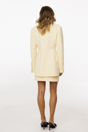Юбка выполнена из костюмной ткани. Юбка прямого силуэта, длиной выше колена. Юбка на притачном поясе, на переднем полотнище обработаны две пары талиевых вытачек и средний шов с застежкой на потайную молнию. Пояс с застёжкой на петлю и пуговицу. Юбка на отлетной по низу подкладке._x000D_ Длина юбки: р. 42-46 - 44 см. ЮБКА м. 3032 42 44 46 Длина по переду с поясом 44 44 44 Объем по талии 68 72 76 Объем по бедрам 94 98 102 Объем по низу 95 99 103 Ширина пояса 3,5 3,5 3,5
