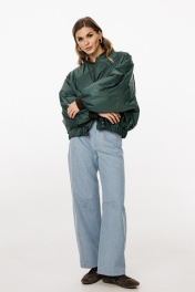 Куртка выполнена из плащевой ткани с утеплителем Isosoft. Куртка О-образного силуэта, длиной выше линии бедер. Куртка двусторонняя. Спереди застежка на молнию и карманы. Рукав покроя кимоно переходящий в кокетки спереди и по спинке. Низ рукава на притачной манжете из трикотажного довяза. Горловина округлой формы с вортником-стойкой из трикотажного довяза. Низ куртки на притачном поясе с эластичной тесьмой внутри. Одна из сторон куртки декорирована на спинке нашивкой из натуральной кожи. Температурный режим от +5*С до -5*С. Длина куртки - 58 см. Длина рукава от горловины - 75 см. КУРТКА м. 3034 44 46 48 Длина по центру спинки 58 58 58 Длина рукава 74 74 74 Объем по груди Объем по талии Объем по низу 98/164 98/165 98/166 Объем рукава вверху 70 70 70 Объем рукава внизу 21 21 21