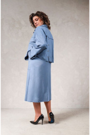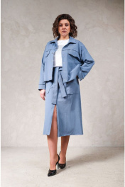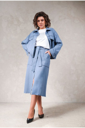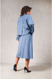 Жакет в джинсовом стиле из мягкого трикотажного полотна, для прогулок и на каждый день. Жакет-куртка до талии с застежкой на планку кнопок. Воротник отложной, рукава рубашечные с манжетами. На спинке - кокетка и декоративная планка с кнопками.