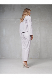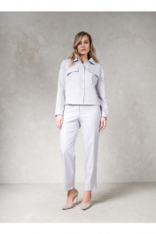 Жакет женский, спортивного стиля с застежкой впереди на кнопки. Воротник рубашечного типа, Впереди на груди кокетка и декоративные клапаны, карманы "листочки". Рукава втачные, длинные украшены декоративной патой. На спинке кокетка. Жакет длиной до талии, на подкладке.