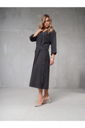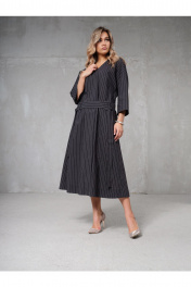 Платье A-образного силуэта, с имитацией запаха. Рукав на спущенной пройме.В боковых швах функциональные карманы с декоративными патами .По спинке кокетка и встречная складка для удобства эксплуатации. Платье дополнено поясом .
