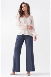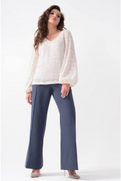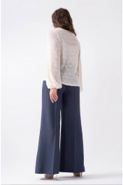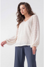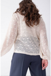 Джемпер из тонкого кружевного трикотажа свободного силуэта с V-образным вырезом горловины. Рукав длинный втачной, расширен книзу и собран на резинку. В комплекте идёт топ на бретелях. Длина 62 (64)см Рукав 67см