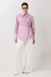 "Рубашка ERTANNO — изысканная модель с характером, в которой классическая рубашечная форма сочетается с современной дизайнерской деталью. Мягкий приталенный силуэт красиво подчёркивает фигуру, выразительная асимметричная складка спереди придает форму динамику и стильную архитектуру. Складка застегивается на пуговицу и дополняется трендовой брошью — огненным акцентом, который при желании можно снять и изменить настроение образа. Классический рубашечный воротник придает модели благородную строгость, а спущенная линия плеча и длинный рукав делают силуэт более мягким и современным. Широкие манжеты с пуговицами по нижнему рукаву придают блузке особую выразительность. Длина ниже линии бёдер делает модель универсальной — ее легко сочетать как с брюками, так и с юбками, создавая стильные образы на каждый день. Блузка ERTANNO — когда одна деталь способна сделать образ исключительным.На модели размер 44 Параметры модели: рост-175 см, 82-67-91"