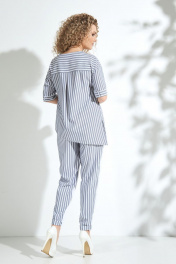 Костюм из льна-вишера с асимметричной туникой и зауженными брюками Euromoda 335 серо-голубой