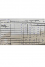 Комплект женский состоящий из блузона и брюк. Блузон прямого кроя с отрезной кокеткой по переду. Рукав приспущенный с манжетой по низу. Брюки высокой посадки с заложенными складками по линии талии и по низу. Изделие на широкой манжете по низу. По брючинам расположены накладные карманы