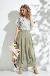 Комплект из блузона и брюк с заложенными складками и карманами Euromoda 343-1