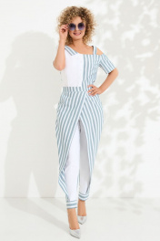 Блуза с асимметричным рукавом и брюки с выточками из текстиля Euromoda 408