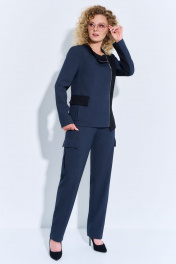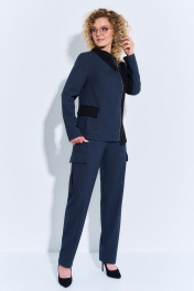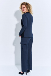 Костюм женский 2х предметный. Жакет полуприлегающего кроя, ассиметричный , на полочке расположен накладной карман с клапаном. Горловина -прилегающая стойка. Рукав втачной длинный. Брюки зауженные к низу на притачном поясе с резинкой. на уровне колена симметрично настрочены накладные карманы. Застежка молния на гульфике.