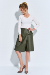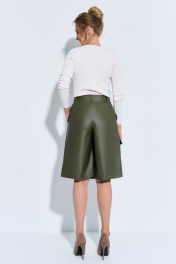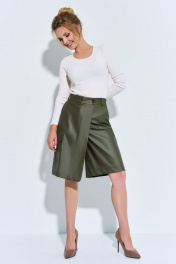 Юбкка -шорты выполены из эко-кожи. Шорты завышенной посадки на притачном поясе с резинкой. По передней брючине пола с накладным карманом. В боковых швах расположены функциональные карманы.