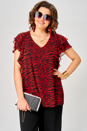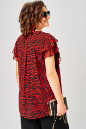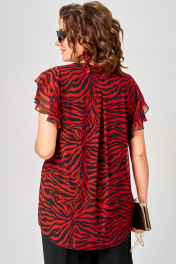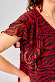 Блузка женская элегантная легкая стильная нарядная повседневная полуприлегающего силуэта на подкладке, выполнена из легкого шифона с красивым притном. Вырез горловины V-образный на обтачке. Рукав втачной с двойным воланом. что придает легкости и стиля изделию. Низ блузы фигурный, в боковых швах обработаны разрезы. По спинке встречная складка.