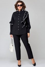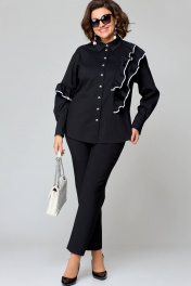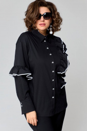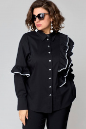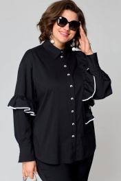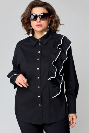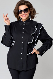 Блузка из хлопка с асимметричным подрезом и рюшами EVA GRANT 7136-1 черный+белое_кружево