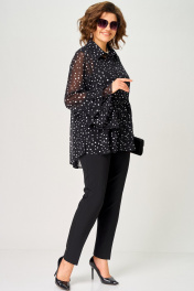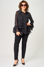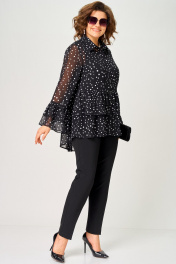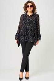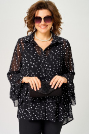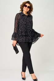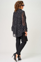 Блуза женская шикарная нарядно - повседневнаая полуприлегающего силуэта на подклдке, выполнена из красивого шифона с принтом. Вырез горловины воротник на стойке рубашечного типа, рукав втачной по низу с притачными воланми. Застежка доверху на обметанные петли и пуговицы, низ блузы фигурный (по спинке длиннее). По переду блузы притачные воланы, в боковых швах обработаны разрезы. Декором блузы служит принт амой ткани и отделочные элементы в виде воланов.