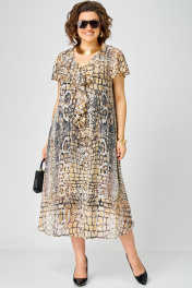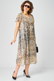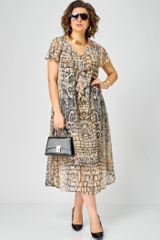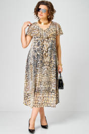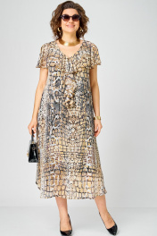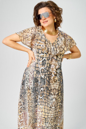 Платье женское легкое красивое стильное нарядное повседневное из шифона с анималистичным принтом на подкладке свободного силуэта расширенное к низу. Вырез горловины V образный на обтачке, по горловине широкий волан переходящий в рукав. Что придает изделию легкость и элегантность. В боковых швах обработаны разрезы. Низ платья фигурный. Декором служит волан и принт самой ткани.