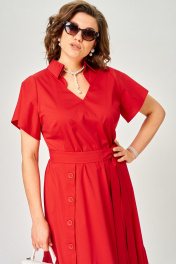 Платье элегантное красивое женское нарядное повседневное полуприлегающего силуэта расширенное к низу. Выполнено из хорошего красивого однотонного хлопка.Вырез горловины фигурный, что придает изделию "изюминку" воротник на стойке рубашечного типа. Рукав спущенный по низу с воланом собранным на сборку, что делает элемент воздешным и легким. Платье отрезное по талии. Юбка ассиметричная с застежкой доверху на обметанные петли и пуговицы. По низу юбки притачной волан, в боковых швах обработаны карманы. Декором платья служит дизайн ткани, съемный пояс из основной ткани и отделочные пуговицы.