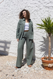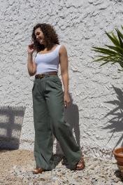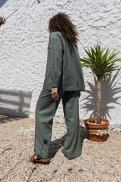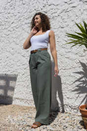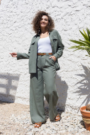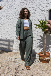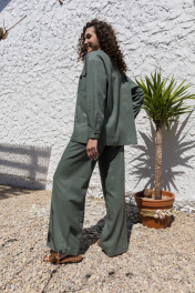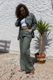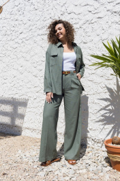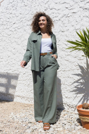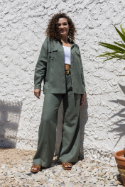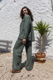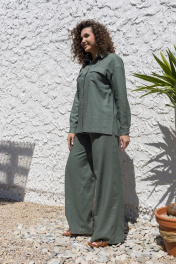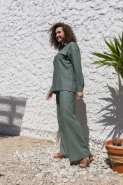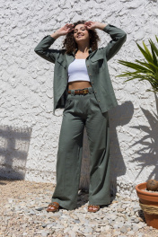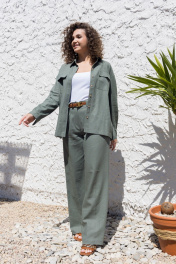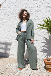 Леновый костюм 2-ка: брюки с поясом и рубашка оверсайз EZER 2042 хаки