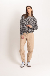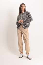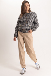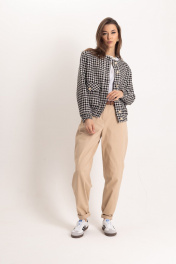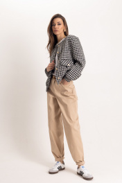 Бежевый бомбер и брюки-бананы в гусиную лапку EZER 2047