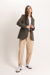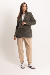 жакет: ПЭ 60%, вискоза 39%, эластан 1%; подкладка: поливискоза жаккард (55% ПЭ, 45% вискоза); брюки: хлопок 100%