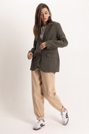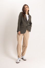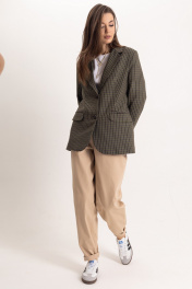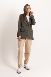 Комплект в английском стиле Old Money, состоящий из жакета и брюк-бананов из бежевого джинса. Классический элегантный однобортный приталенный жакет в клетку на основе не мнущейся поливискозы с карманами-клапанами, декорирован лаковыми пуговицами из красного дерева. Практичные и стильные брюки-бананы имеют высокую посадку, тем самым они подчеркивают талию и скрывают недостатки в области живота. Они выполнены из 100% натурального бежево-песочного хлопка, что обеспечивает комфорт и приятное ощущение при ношении. Свободный крой по всему объему бедер, слегка зауженные книзу брючины, ширинка на пуговицах, четыре кармана. Длину брюк можно подвернуть и скорректировать по своему усмотрению.