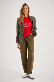 Комплект из жакета, свитшота и джинсов с английским стилем EZER 3001 зелёный_алый_хаки