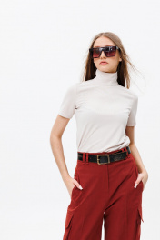 Бежевый трикотажный топ с замком, универсальный стиль FAMA F06-03s бежевый