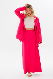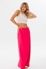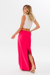 Розовая длинная юбка с разрезом и эффектным силуетом FAMA 24022-2 фуксия