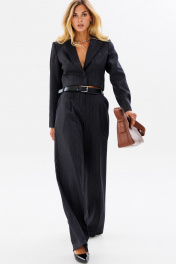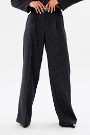 Брюки прямого кроя в полоску из текстиля для делового образа FAMA 24026 графит_белая_ полоска