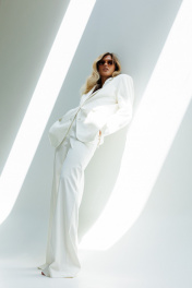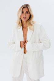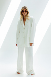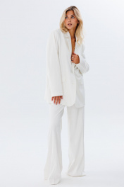 Костюм белый брючный с жакетом из поливискозы для офисного стиля FAMA 24034-1 молочный_экрю