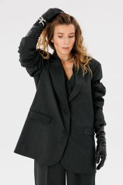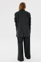 Костюм ДВОЙКА выполнен в ткани из поливискозы - тренд сезона. Жакет ОВЕРСАЙЗ, с боковыми прорезными карманами, длина жакета 76 см. Брюки Палаццо прямого классического кроя с карманами,длина изделия 110 см