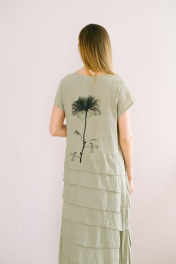 Любимой одеждой всех девушек в летний сезон всегда были и будут платья. Они покоряют своей непринужденностью и универсальностью. Романтичное и загадочное, элегантное и женственное - это платье подойдет не только для повседневной носки, но также и для свидания и вечеринки. Ставка - на многослойность и свободный крой: это сделало его максимально удобным, женственным и оригинальным, а необычный принт на спинке - неповторимым. Цельнокроенный короткий рукав с ластовицей, удобной А-силуэт, комфортная длина, это платье просто обязано занять свое место в вашем гардеробе. Длина рукава с плечом около 20 см. Длина изделия около 127 см.