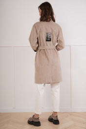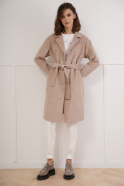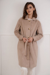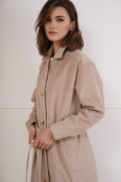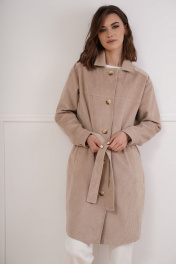 Тренч - главная вещь весны. Практичная - его носят с марта по июнь. Один из трендов весенней моды - вельветовый плащ. Строгость линий, в соединении с мягкостью и натуральностью материала идеально подойдет приверженцам как классического, так и расслабленного спортивного стиля. Свободный упрямленный силуэт со слегка заниженной линией плеча, центральная застежка, комфортный рукав рубашечного типа, классический воротник. Полочка с отрезной кокеткой, бочком и карманом листочкой. Спинка с отрезной кокеткой и средним швом с отлетной шлицей. Рукав с локтевым швом на притачной манжете. Длина изделия около 97 см. Длина рукава с плечом около 73 см.