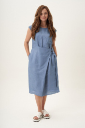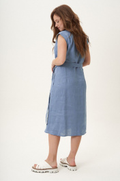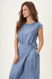 Лён - главное действующее лицо модного летнего сезона! Это древний и, в то же время, очень современный материал. Главное требование к одежде летнего сезона - максимальная лёгкость, простота кроя, удобство. Платье из льна максимально отвечает всем этим требованиям! Свободный упрямлённый силуэт, заниженная линия плеча с частично цельнокроенной верхней частью рукава, нагрудная вытачка. Полочка с отрезным лифом, нижняя часть с цельнокроенным запахом. Запах фиксируется поясом и патой с полукольцами. Спинка с талиевыми вытачками. Длина платья около 110 см.