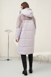 Стёганное пальто... Мы обожаем его за универсальность и удобство. В этом сезоне-ставка на необычный крой. Сочетание стёганного полотна и меха в тон смотрится дорого и элегантно. Силуэт-кокон, покрой втачной на заниженной линии плеча, капюшон цельнокроенный с центральной частью полочки. Полочка с наклонными прорезными карманами с листочкой и отрезной кокеткой. Спинка с отрезной кокеткой. Рукав с отрезной центральной вставкой. Кокетка полочки, спинки вставка рукава и капюшоном сподбортом из отделочного меха. Рукав расширенный в области оката. Длина пальто около 117 см. Длина рукава с плечом около 74 см. Наполнитель синтепон 300 г/м2