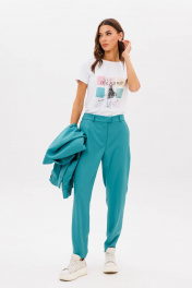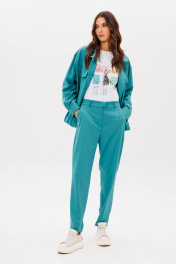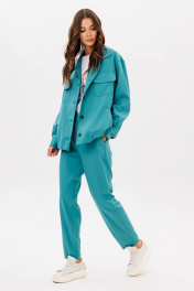 Блейзер - как дух свободы! Хотите уйти от строгих линий и условностей? Тогда это как раз то, что вам нужно. Оригинальна модель и трендовый цвет весеннего сезона позволяет воплотить в жизнь свои модные фантазии и разнообразить гардероб. Свободный силуэт с заниженной линией плеча, рукав, расширенный в области оката, центральная застёжка на петли и пуговицы, стояче-отложной воротник. Полочка с накладными карманами с клапаном в области груди и прорезным карманом с листочкой. Спинка со средним швом. Рукав с локтевым швом, размером, манжетой и мягкой складкой с области локтя. Брюки классические, с наклонными боковыми карманами, притачным поясом, эластичным в области спинки, застёжкой на брючный крючок и молнию. Длина блейзера около 60 см, длина рукава с плечом около 74 см. Длина брюк около 100 см.