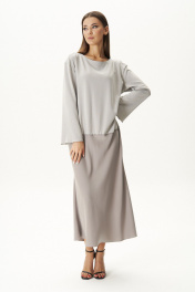 Платье, которое соединяет в себе самые модные направления. Великолепный струящийся атласный низ и комфортный изысканный трикотаж в верхней части. Это платье объединяет в себе образ, состоящий как бы из двух вещей. Свободный прямлённый силуэт, покрой втачной на заниженной линии плеча, рукав расширенный внизу, юбка-трендовая рыбка. спинка со средним швом и изящной каплей-застёжкой. Длина изделия около 132 см. Длина рукава с плечом около 72 см.