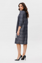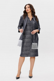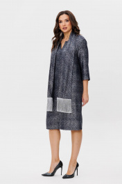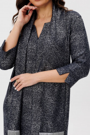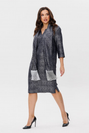 Сверкающие металлизированные поверхности-проверенный способ не остаться незамеченной. Серебренное напыление поддержанное эффектной бахромой, в лаконичном платье "шифт" длины миди, отличный выбор для праздничного настроения. Свободный упрямлённый силуэт со слегка заниженной линией плеча. Полочка с центральным швом и декоративным разрезом горловины. Спинка с центральным швом. Рукав двухшовный с разрезом в переднем шве. Воротник-шарф, косого кроя с отделочной бахромой. По боковым швам-небольшие разрезы. Длина платья около 107 см. Длина рукава с плечом около 62 см.