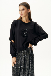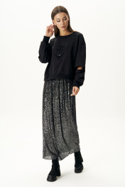 Тренд на металлический блеск в одежде триумфально ворвался в нашу жизнь, а вместе с ним - блестящие юбки макси длины. Чем не повод приобрести для себя такую юбку из трикотажной пайетки. Она, как нельзя лучше, подходит для создания стильного, нарядного образа, а если заменить свитшот, и дополнить спортивной обувью, то и для повседневного. Юбка прямая, длинная на эластичном поясе и подкладке. Свитшот свободного силуэта, с заниженной линией плеча, рукавом, расширенным в области оката, декоративным элементом по центру полочки. Рукав двухшовный с поперечным подрезом на передней части. Длина рукава с плечом около 74 см. Длина юбки около 90 см.