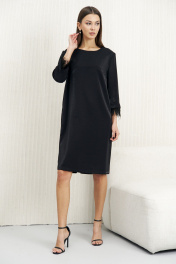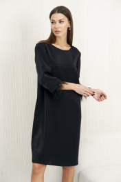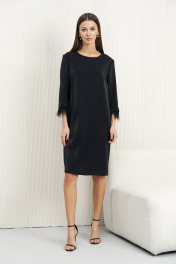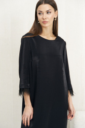 Черное нарядное платье из текстиля с перьями по рукавам Fantazia Mod 4719