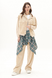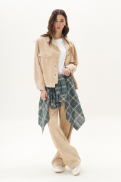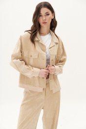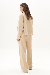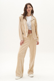 Из сезона в сезон комплекты из штрукса остаются must have, пожалуй ни одна одежда не может похвастаться таким постоянством. Джинсы становятся минималистичные, но эффектные - этакий девиз современных стиляг. Свободный силуэт, рубашечный покрой, втачной воротник, рукав с притачной манжетой. Полочка с отрезной кокеткой, рельефами и карманом с клапаном. Спинка с отрезной кокеткой и рельефами. Рукав с локтевым швом и разрезом в нём, отделочным лампасом по центру рукава, мягкой складкой и притачной манжетой. По низу куртки - притачная отделочная полоса. Застёжка центральная на петли и пуговицы. Джинсы классического покроя, свободные, с 5-ю карманами. По боковому шву - лампас. Длина куртки около 52 см. Длина рукава с плечом около 74 см. Длина брюк около 105 см