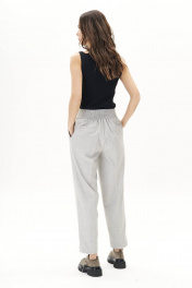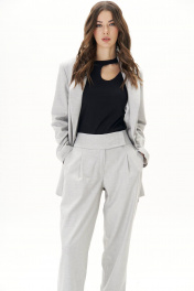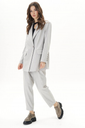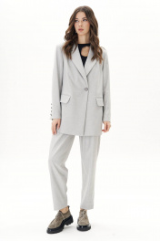 Вопреки стереотипам, стиль ""casual"" - это не только футболки, джинсы и кроссовки. В кэжуал-гардероб входят любые удобные комплекты... В основе ДНК-стиля - комфорт и собранность. Свободный оверсайз-блейзер рубашечного покроя с заниженной линией плеча, пиджачным воротником с расширенным лацканом, рукавом, расширенным в области оката, без фиксирующей застёжки, со съёмным поясом. Полочки с накладным фигурным карманом с вытачкой и отделочной строчкой. Спинка с центральным швом. По линии борта, воротнику, шву втачивания рукава, поясу - контрастная строчка. Брюки в расслабленном стиле, на притачном эластичном поясе, с наклонными боковыми карманами и вытачками в области низа брюк, для придания им неординарной формы. По карманам, вытачкам, боковому шву, шву сидения - отделочные контрастные строчки. Длина блейзера около 76 см. Длина рукава с плечом около 74 см. Длина брюк около 104 см.