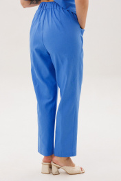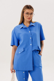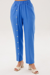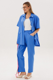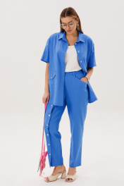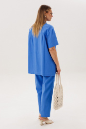 Главный тренд этого года и самый востребованный материал в жаркий сезон, конечно же лён. Модницы, которые ценят комфорт и универсальность, обязательно имеют в своем гардеробе вещи из этого уникального полотна. Брючный комплект всегда смотрится эффектно и дорого. Свободная, упрямлённая рубашка и брюки в расслабленном стиле. Покрой - рубашечный, воротник классический рубашечный, застёжка центральная. Полочка с диагональным членением и карманом с клапаном. Спинка с отрезной кокеткой и мягкими складками. В боковых швах - разрезы. Рукав с отделочной пуговицей. Брюки свободные, слегка зауженные к низу, на эластичном поясе с наклонными карманами. Правая передняя половинка брюк со сквозной шлицей и пуговицами. Длина брюк около 102 см. Длина рубашки около 77 см. Длина рукава около 20 см.