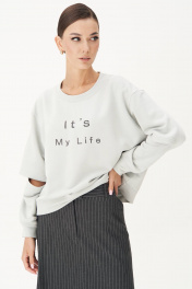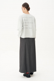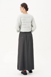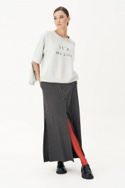 Достаточно посмотреть на моду улиц, чтобы понять: современный casual достаточно перспективен, и в мире моды ему уготовано большое будущее. Комплект невероятно комфортный, сочетающий в себе две разнофактурные, но такие уравновешивающие друг друга полотна. Свободный оверсайз свитшот с заниженной линией плеча, рукавом расширенным в области оката и дизайнерским принтом. По низу изделия и рукавов - притачной эластичный манжет. Рукав из 4-х частей с эффектным разрезом в области локтя. Юбка А-образного силуэта с центральным швом с высоким разрезом по переднему полотнищу. Заднее полотнище с центральным швом, отрезной кокеткой, в швах которой карманы,и застёжкой на тесьму-молнию. Пояс отрезной с эластичной тесьмой по спинке. По боковым швам - наклонный карман.
