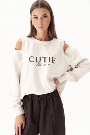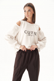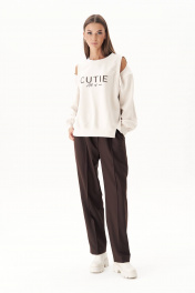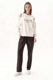 Достаточно посмотреть на моду улиц, чтобы понять: современный casual достаточно перспективен, и в мире моды ему уготовано большое будущее. Комплект невероятно комфортный, сочетающий в себе две разнофактурные, но такие уравновешивающие друг друга полотна. Свитшот оригинального кроя с эффектными подрезами по полочке и спинке (образующими открытый участок в области плеча), эффектной наполненной выстрочкой на полочке и отделочными довязами. Брюки в расслабленном стиле, на эластичном поясе с наклонными боковыми карманами и кантом-защипом по передним половинкам брюк. Длина свитшота 62 см. Длина рукава 50 см. Длина брюк около 102 см.