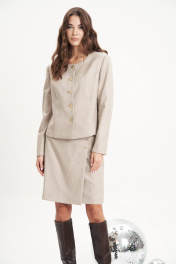 Костюмный тренд - это максимум стиля и практичности, особенно если носить их в неформальной обстановке. Это настоящий casual-шик, который легко трансформируется в вечерний образ. Юбка из полотна с вкраплением пайетки, А-силуэта, на запах, с отделочным декором. Застёжка по боковому шву. Пояс притачной, эластичный в области спинки. Длина юбки около 50 см. На фото с жакетом 4982.