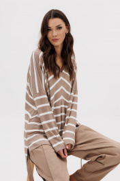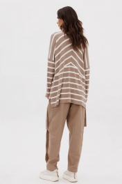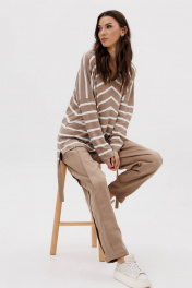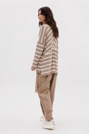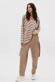 Этот брючный комплект-максимум стиля и практичности. Его легко можно ""разобрать"" на составные части и сочетать с другими вещами. Он акцентирует внимание на вашей индивидуальности и делает комфорт приоритетам! Свободный упрямленный джемпер в полоску из трикотажа и супер трендовые брюки из хлопкового габардина. Джемпер упрямленный, с заниженной линией плеча, боковыми разрезами и разноуровневым низом. Брюки в расслабленном стиле, сложного покроя с притачным поясом по центральным передним и задним половинкам и цельнокроеных эластичным поясом по бочкам. Без застежки, с мягкими застроченными складками по переду и спинке, слегка зауженные к низу. Линия талия регулируется притачным поясом с полукольцами. Длина джемпера около 77см. Длина рукава с плечом около 74 см. Длина брюк около 102 см.