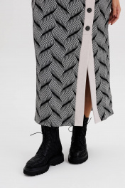 Модный трикотажный костюм с юбкой станет отличным выбором для повседневных образов. В нём удобно и комфортно! Свободный упрямлённый джемпер с вырезом поло, воротником и отделкой из контрастного трикотажного полотна. Юбка прямая. с эффектной шлицей по левой стороне переда и отделкой из контрастного полотна. Пояс юбки на эластичной тесьме в области спинки, с застёжкой по центру заднего полотнища. Длина джемпера в 46-48 р. около 60 см, в 50-52 р. около 63 см. Длина рукава с плечом около 58 см. Длина юбки около 90 см.