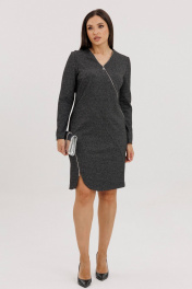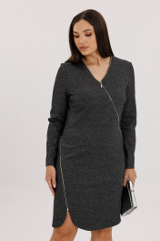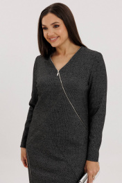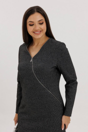 Стильное платье полуприлегающего силуэта втачного покроя создано для женщин, которые ценят комфорт и элегантность. Модель выполнена из мягкого трикотажного полотна с едва заметным вкраплением люрекса, что придаёт образу утончённое сияние и делает платье уместным как днём, так и вечером. Фигурные рельефы и втачные детали подчёркивают женственный силуэт, обеспечивая идеальную посадку по фигуре. Асимметричная декоративная молния добавляет современный акцент и визуально вытягивает линию тела. Длина чуть выше колена и длинные рукава делают платье универсальным — оно подойдёт для офиса, вечерних мероприятий и повседневных выходов. Особенности модели: Полуприлегающий силуэт, втачной покрой Трикотажное полотно с лёгким блеском люрекса Асимметричная декоративная молния Комфортная длина выше колена Универсальный стиль: офис, вечер, город