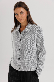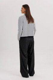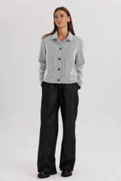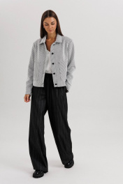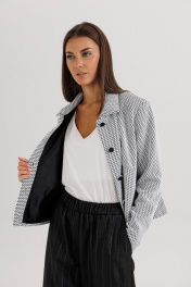 Современный женский костюм в стиле smart casual сочетает элегантность классики и комфорт повседневного образа. Комплект состоит из жакета прямого кроя с крупными пуговицами и брюк в тонкую вертикальную полоску. Контраст текстур придаёт образу динамичность и стиль. Жакет укороченной длины выполнен из лёгкой ткани с графическим узором, имеет отложной воротник и аккуратную застёжку на пуговицы. Брюки прямого силуэта со стрелками и комфортной посадкой по талии визуально вытягивают силуэт и добавляют стройности. Костюм универсален — идеально подходит для офиса, деловых встреч и городских выходов. Его можно сочетать с лоферами, туфлями на каблуке или кроссовками для более расслабленного стиля. Особенности модели: Комплект: жакет + брюки Стильный контрастный дизайн Прямой силуэт и длина брюк миди Классическая полоска — тренд сезона 2025 Удобная посадка и лаконичный крой