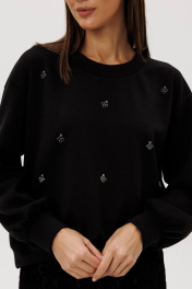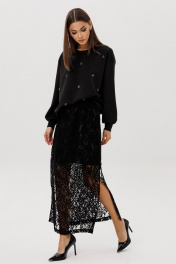 Стильный комплект, сочетающий уют и женственность. Мягкий свитшот из комфортного трикотажа украшен ручной расшивкой декоративными элементами в форме «клевера» — утончённая деталь, создающая акцент на естественной элегантности. Юбка выполнена из трендового шенилового гипюра с укороченной подкладкой, что придаёт образу лёгкость и современную многослойность. Такой комплект — универсальное решение для повседневных образов и стильных выходов: достаточно сменить обувь и аксессуары, чтобы выглядеть по-новому.